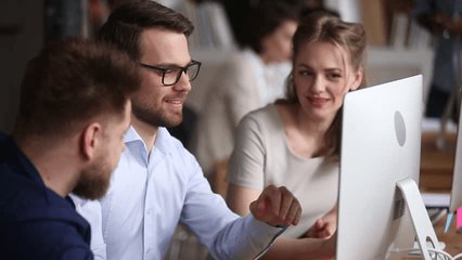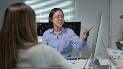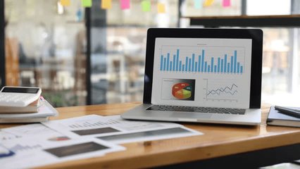 Office Desk With Computer Showing Financial Data Analysis Videos