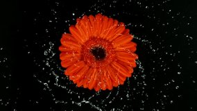 Orange Gerbera In Slow Motion With Rain Videos