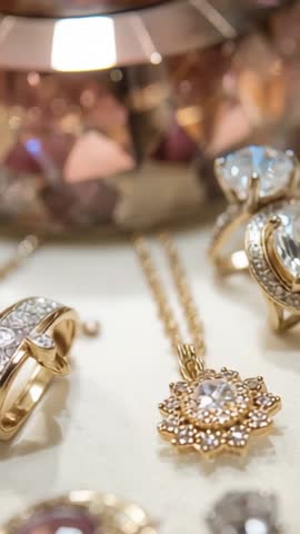 Panning Close Up Of Sparkling Diamond Cluster In Prong Mount On Black Background Vertical Video Videos