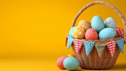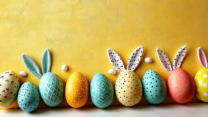 Patterned Easter Eggs On Vibrant Yellow Background Videos