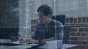 Pensive Man With Digital Data Network Overlay Videos