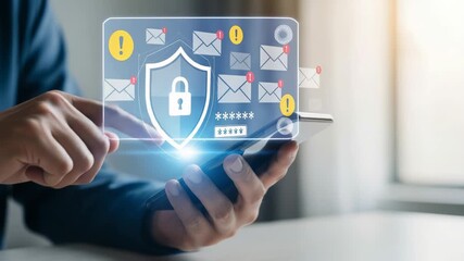 Person Using Smartphone With Digital Network Overlay Videos