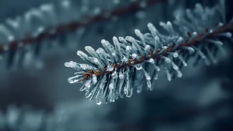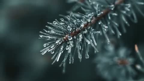 Pine Needles Catching Frosty Crystals And Icicles In Soft Morning Light Videos