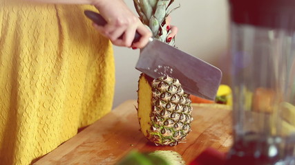 cutting pineapple