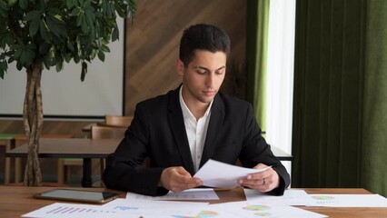 Professional Businessman Analyzing Statistical Documents In Modern Office Videos