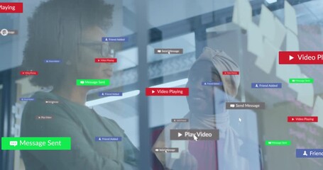 Professionals Collaborating With Technology Ui Elements Overlay Videos
