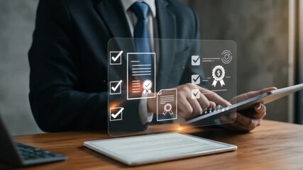 Professionals Using Laptop With Digital Interface Overlay Videos