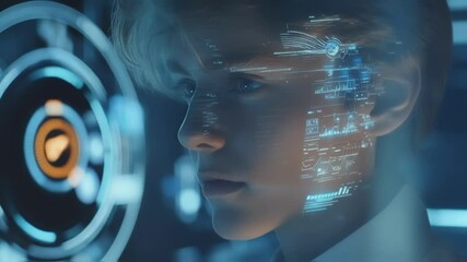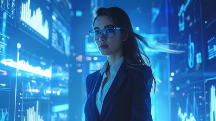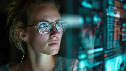 Programming Professional Analyzing Code In Futuristic Data Center Videos