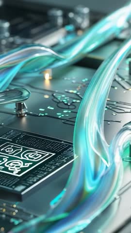 Pulsing Ornate Processor Glowing Cyan Core With Neon Circuit Traces Vertical Video Videos