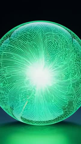 Pulsing Translucent Sculpture Creating Ripples While Green Orb Sprouting Vertical Loop Videos