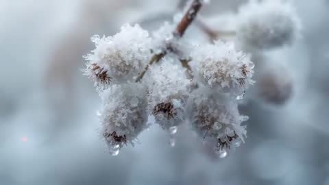 Racking Focus On Frosted Leaf Cluster Revealing Hoarfrost Crystals Winter Macro Clip Videos