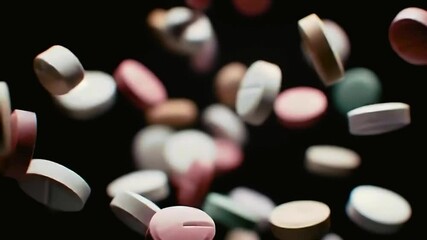 Red Capsules Falling Against Black Background Videos