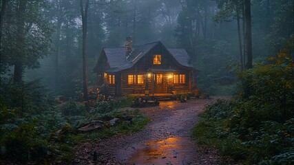 misty cabin