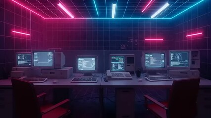 Retro 80s Style Digital Data Processing Center Animation Videos
