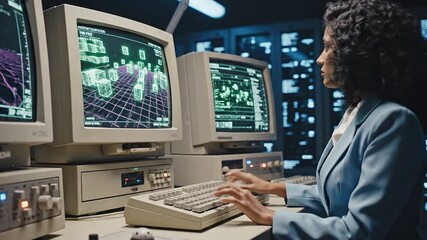 Retro Computer Monitor With Digital Matrix Code Display Videos