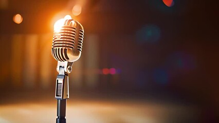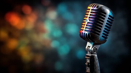 Retro Microphone With Colorful Abstract Bokeh Background Videos