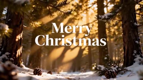Rising Glowing Merry Christmas Script Pulsing Casting Blue Light Over Snowy Pine Forest Videos