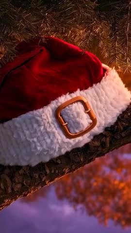 Rising Santa Hat Floating Through Snowfall With Sparkling Holiday Velvet Glow Videos