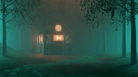 snowy cottage