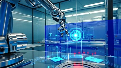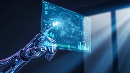 Robotic Arm Interacting With Futuristic Data Interface Videos
