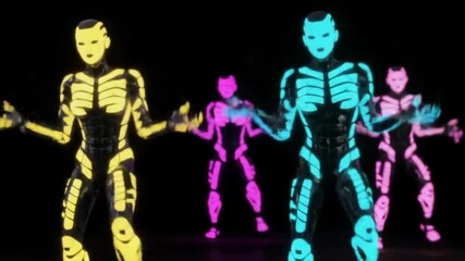 neon skeleton dancers