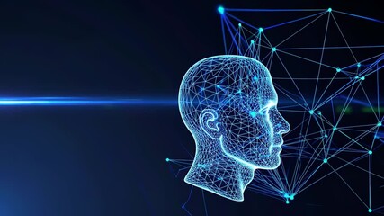 Rotating 3d Wireframe Head With Neural Brain Visualization Videos