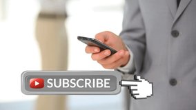 Rotating And Panning Camera Revealing Floating Blue Subscribe Button On Smartphone Screen Videos