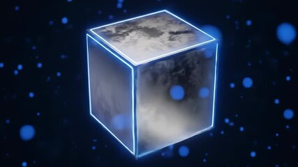 Rotating Futuristic Neon Cube In Deep Space Videos