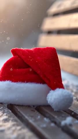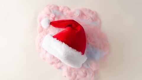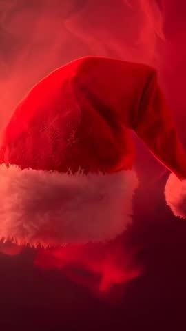 Rotating Red Santa Hat Drifting On Teal Background With Fluffy Fur And Pompom Videos