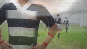 Rugby Player Catching Ball Against Dramatic Cloudy Background Videos