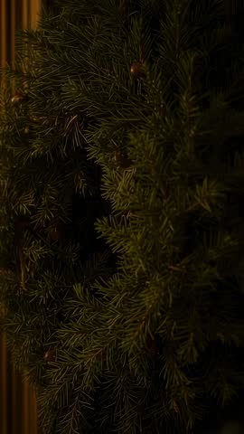 Santa Hat Sliding And Settling On Illuminated Evergreen Wreath On Rustic Wooden Door Videos