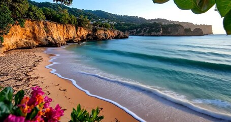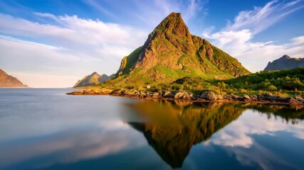 Scenic View Of Green Rocky Coast With Tranquil Ocean Videos