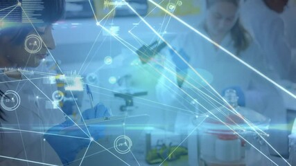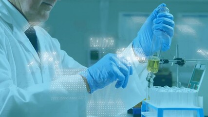 Scientist Analyzing Beaker With Digital Data Overlay Videos