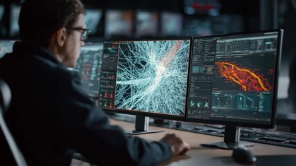 Scientist Analyzing Complex Scientific Data On Computer Videos