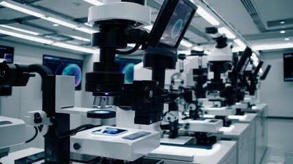 Scientist Analyzing Data On Monitors In Laboratory Setup Videos