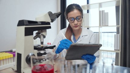 Scientist Analyzing Data On Tablet In Laboratory Environment Videos