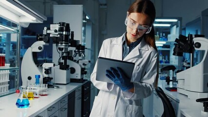 Scientist Analyzing Data With Beaker In Laboratory Videos