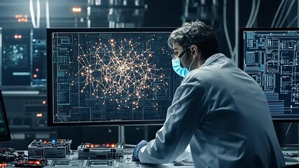 Scientist Analyzing Data With Laboratory Equipment And Digital Interface Videos