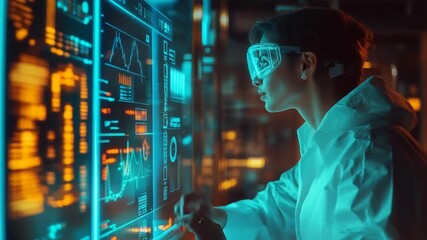Scientist Analyzing Data With Laboratory Equipment And Digital Interface Videos