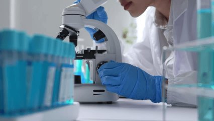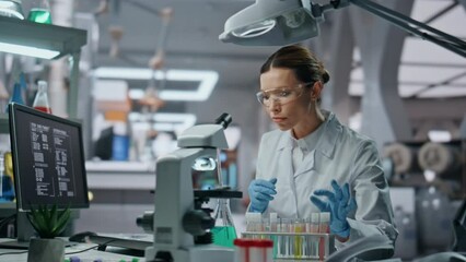 Scientist Analyzing Data With Microscope In Laboratory Videos