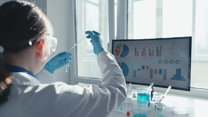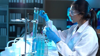 Scientist Analyzing Data With Pipette In Advanced Lab Videos
