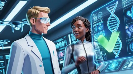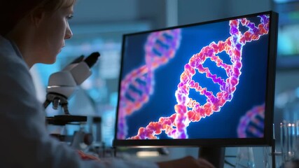Scientist Analyzing Digital Dna Sequence On Computer Videos