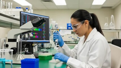 Scientist Analyzing Dna Data On Computer Screen Videos