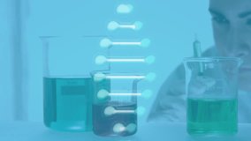 Scientist Analyzing Dna Samples With Digital Interface Overlay Videos