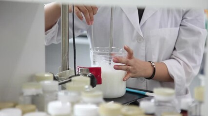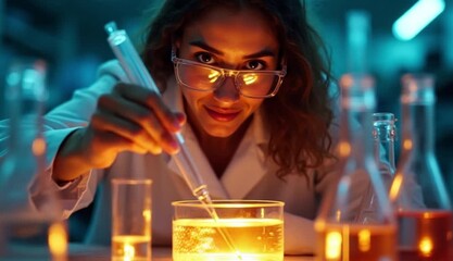 Scientist Analyzing Liquids In Laboratory Beakers Videos