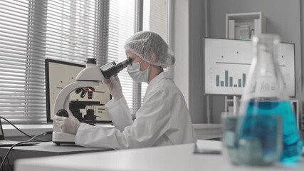 Scientist Analyzing Liquids In Laboratory Beakers Videos
