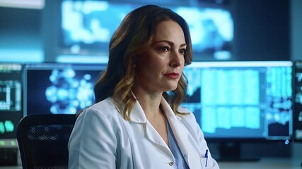 Scientist Analyzing Medical Data On High Tech Screen Videos