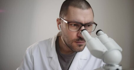 Scientist Analyzing Sample In High Tech Laboratory With Data Visualizations Videos