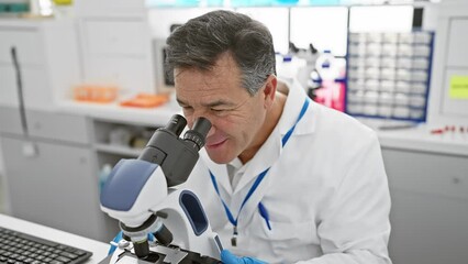 Scientist Analyzing Samples Through Microscope Videos