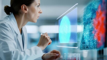 Scientist Analyzing Samples With Digital Data Visualization Videos